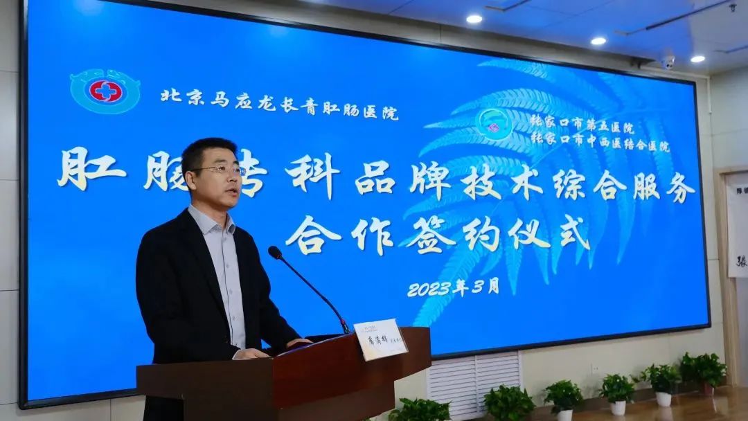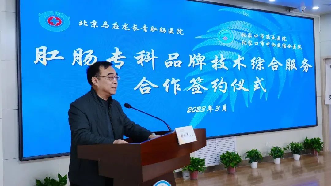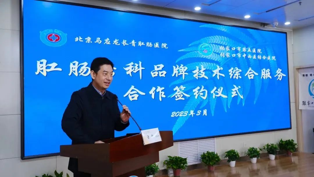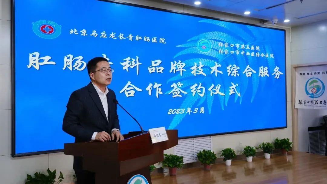 张家口市卫健委主任梅晓春代表市卫健委对市第五医院与马应龙的合作签约表示祝贺,他指出,此次合作是响应政府加快医疗体制改革的创新实践,是推动张家口市第五医院高质量创建三级中西医结合医院的重要举措。医院要以此作为新起点,抓住合作机遇,做强中医肛肠特色专科,奋力开创医院高质量发展新高度、新局面,以更优质的医疗服务回应群众的期盼。