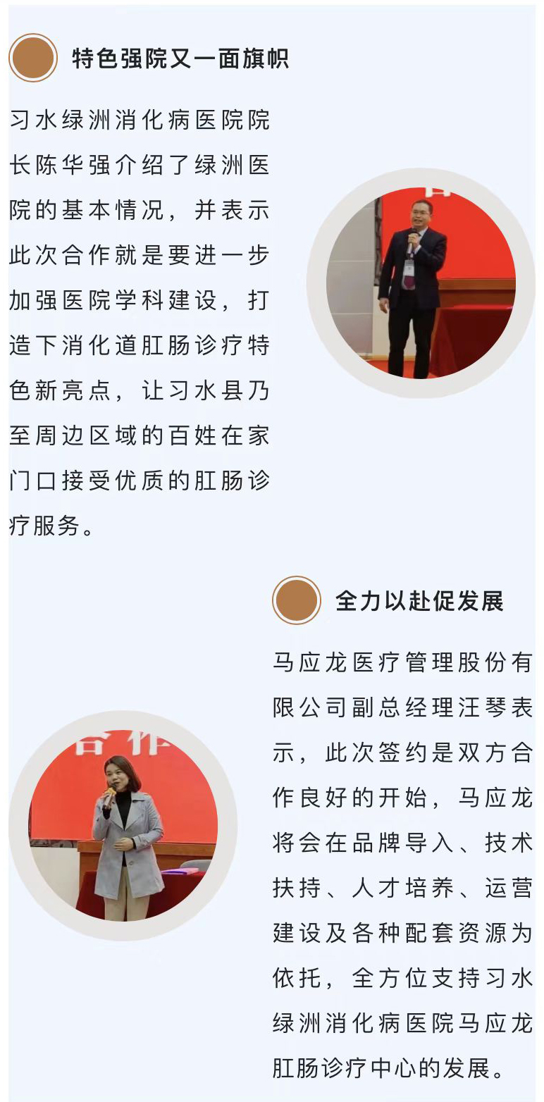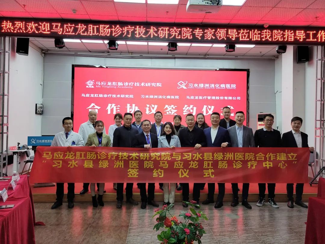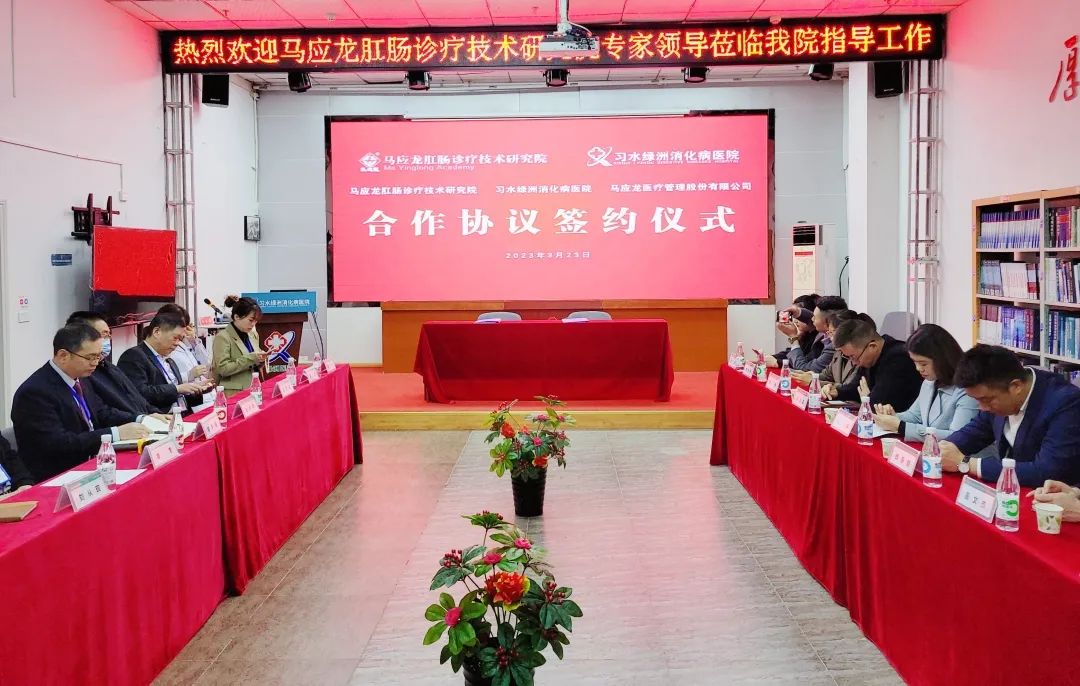 2023年3月23日上午,马应龙肛肠诊疗技术研究院、马应龙医疗管理股份有限公司与习水绿洲消化病医院合作共建马应龙肛肠诊疗中心的签约仪式成功举行。